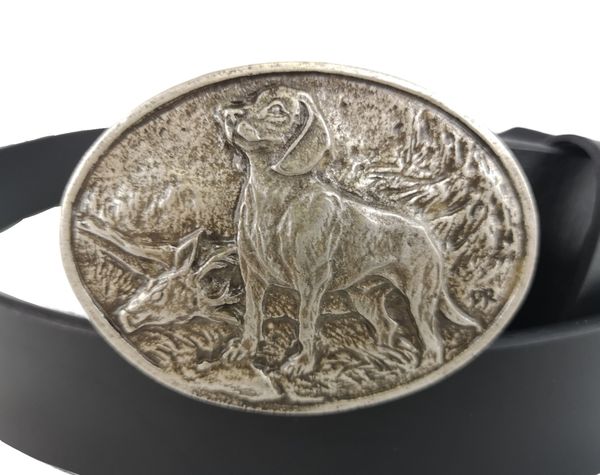 Ledergürtel mit Buckle Jagdhund Bayr. Gebirgsschweißhund . Das Buckle ist etwa 7 x 5,5 cm groß.
